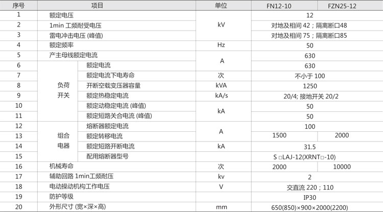 ◎ 既可配電FN12-10型壓氣式負荷開關、組合電器,也可配FZN25-12型真空負荷開關、組合電器,且安裝尺寸完全一致。體積小,免維修,三相聯(lián)動結構,具有明顯的隔離斷口。