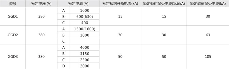 4. GGD3型27個方案和68個規(guī)格。主電路方案是征求廣大的設計使用部門的意見選編的,增加了發(fā)電廠的需要的方案,額定電流增加至3150A,適合2000kVA及以下的配電變壓器選用。此外,為適應無功補償的需要設計了GGJ1、GGJ2電容補償柜、其主電路4個方案,共12個規(guī)格。