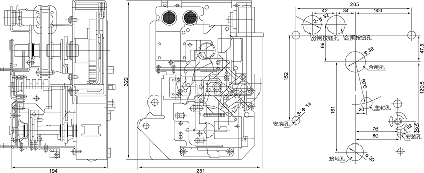 五、彈簧操動(dòng)機(jī)構(gòu)外形及安裝尺寸